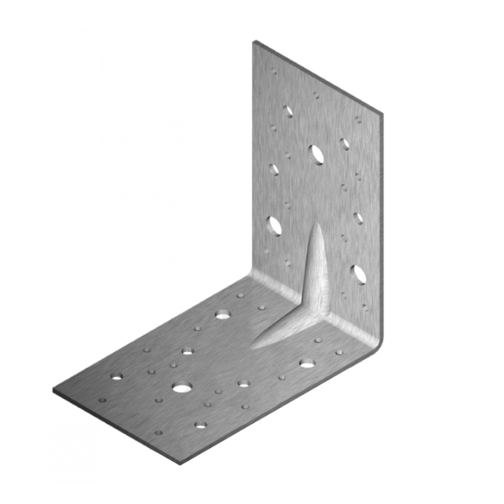 Ъгловата подсилена планка с равнораменна форма е идеално решение за здраво и надеждно свързване на елементи под прав ъгъл. Изработена от дебела стомана и с допълнителни ребра за подсилване, тя осигурява максимална устойчивост при натоварване. Поцинкованото покритие предпазва от корозия, което я прави подходяща за вътрешни и външни приложения.